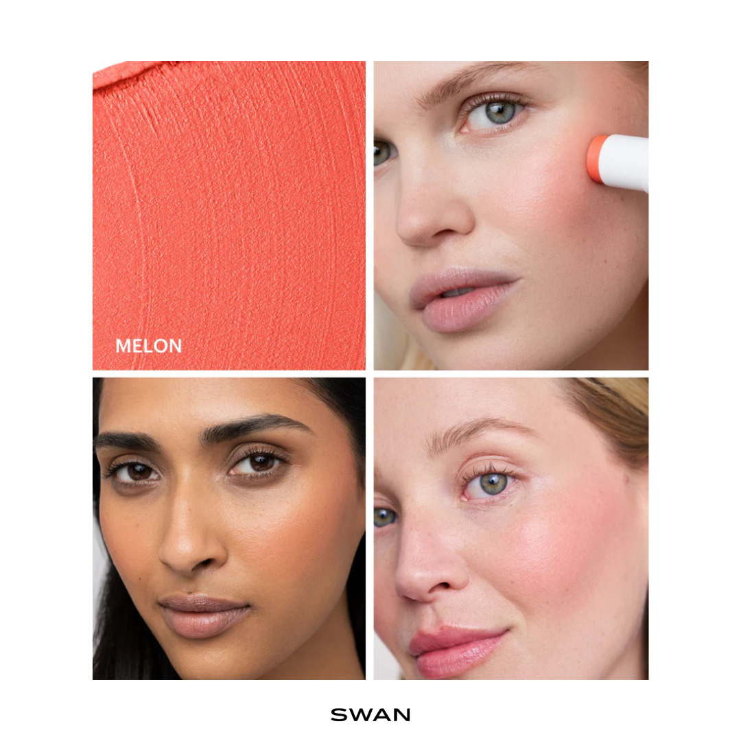Melon Blush: CAPRYLIC/CAPRIC TRIGLYCERIDE, HYDROGENATED PALM OIL, PPG-3 BENZYL ETHER MYRISTATE, PENTAERYTHRITYL STEARATE/CAPRATE/CAPRYLATE/ADIPATE, MICA, CANDELILLA CERA, ETHYLHEXYL HYDROXYSTEARATE, CETEARYL BEHENATE, PRUNUS AMYGDALUS DULCIS OIL, STEARALKONIUM HECTORITE, ORYZANOL, PROPYLENE CARBONATE, TOCOPHEROL, HELIANTHUS ANNUUS SEED OIL, TIN OXIDE, CI 77891, CI 77492, CI 19140, CI 15850